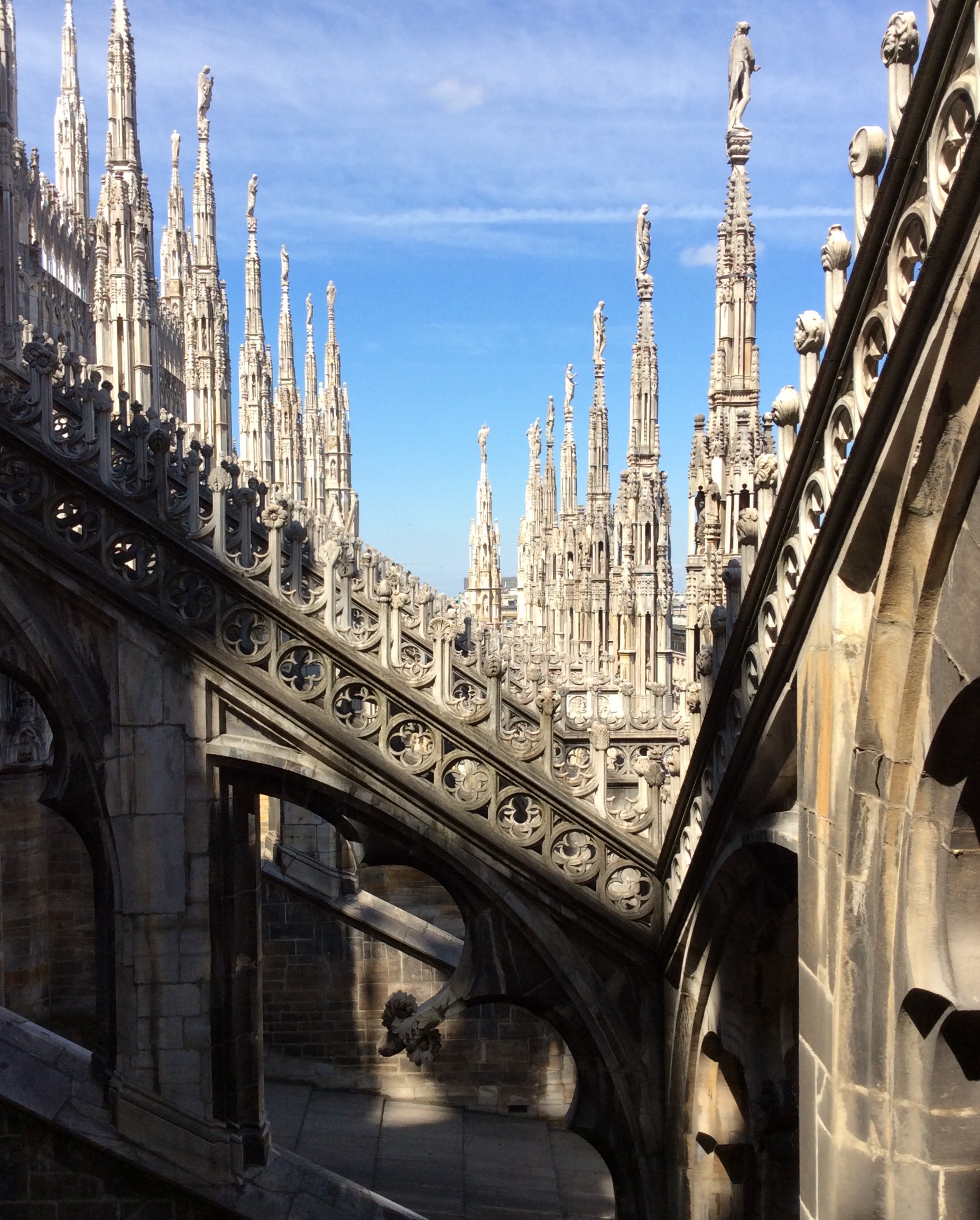 I have always been extremely lucky with the weather when I have been up to the terraces and on a very clear day you can see the Alps and Apennines! It is always nice to see things differently and being up high looking out over the city gives you a new perspective! You can see all the streets running off from Piazza Duomo and every time I visit, I always notice something different, either about the city or the Cathedral itself – usually a new gargoyle or statue!
